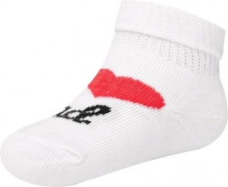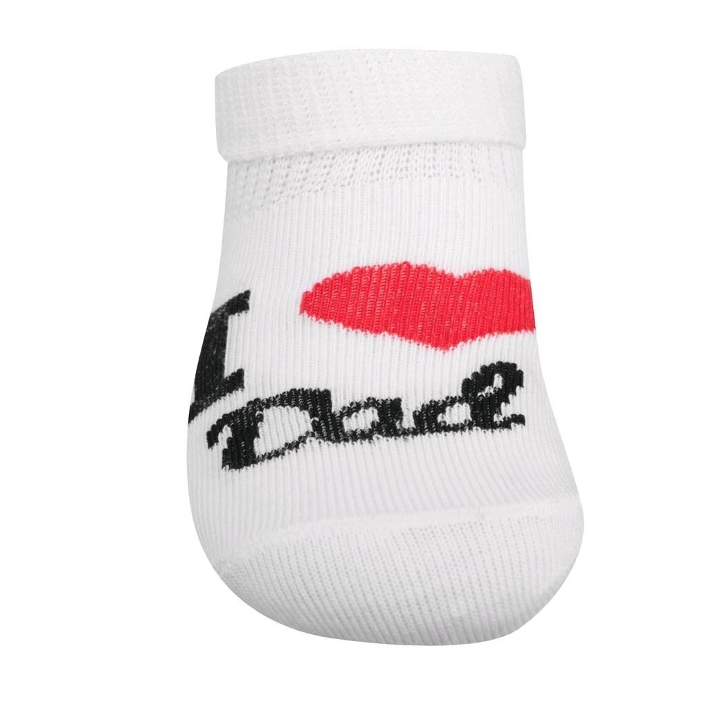 Dopřejte svému miminku jemnost a pohodlí. Tyto bílé dětské ponožky s roztomilým nápisem „I ❤️ Mum & Dad“ zahřejí, dobře sedí a díky pružnému lemu drží na nožičce bez nepříjemného tlačení. Kvalitní materiál nepouští barvu a dlouhodobě si udržuje tvar.