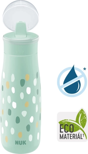 Stylová a praktická dětská láhev NUK Mini-Me Flip o objemu 450 ml je určená pro děti od 12 měsíců. Nabízí náustek 2v1 se slamkou i možností pití bez ní, je odolná proti kousání a vyrobená z 82 % udržitelných materiálů. Láhev je netekoucí, má ochranné víčko na cesty a lze ji mýt v myčce nádobí. Bez BPA, v moderním designu a v souladu s EN 14350.
