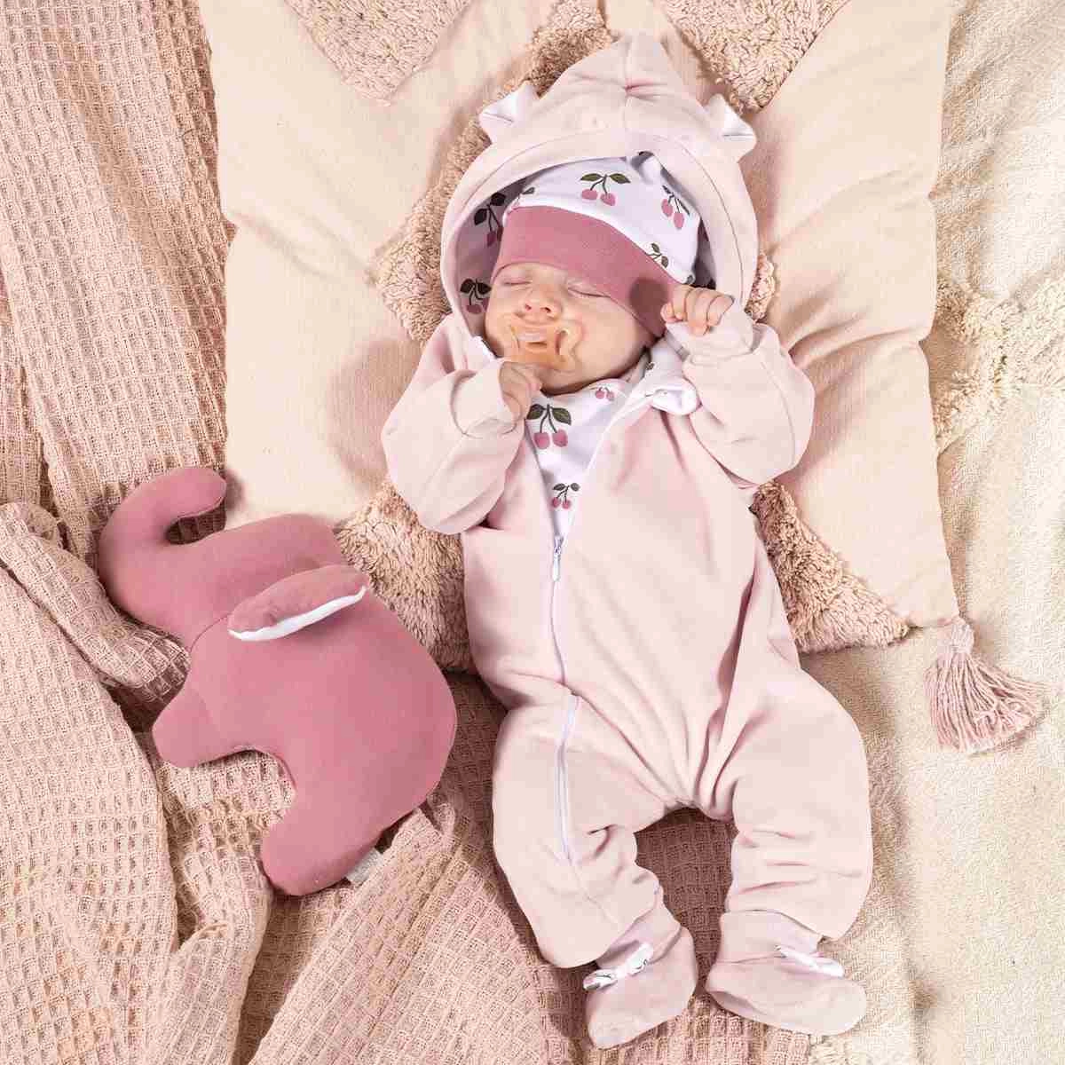 Praktické detaily, jako jsou ohrnovací rukávky a kapuce s roztomilými oušky, z ní dělají ideální volbu pro každodenní procházky i cestování v kočárku. Materiál si dlouhodobě udržuje svůj tvar a vzhled, takže kombinéza vypadá skvěle i po opakovaném praní.
