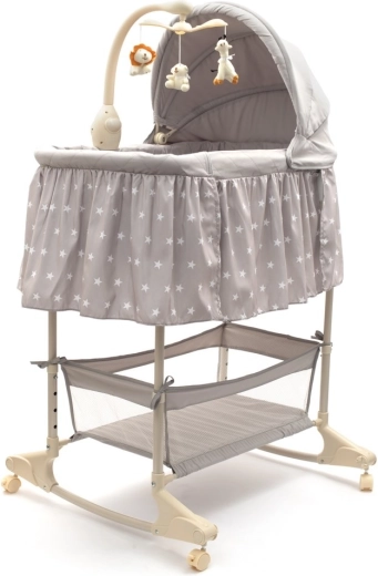 Multifunkční kolébka a postýlka NEW BABY je ideálním řešením pro každodenní péči o novorozence. Nabízí čtyřstupňové nastavení výšky, snadné přesouvání díky kolečkům s aretací a možnost využití jako klasické kolébky po jejich zvednutí. Jednu bočnici lze rozepnout, což usnadňuje noční krmení a uklidňování miminka. Prodyšný, příjemný poťah lze jednoduše sejmout a vyprat.