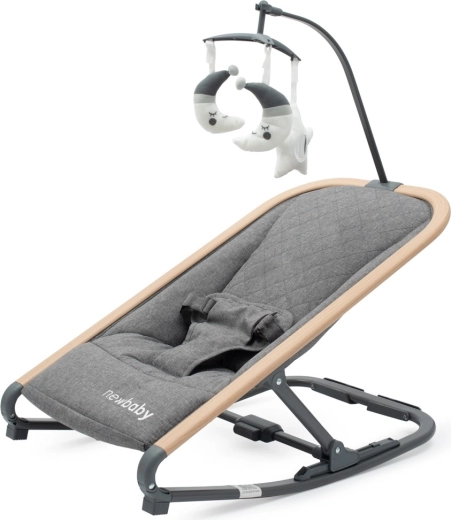 Lehátko lze používat ve dvou režimech – jako houpací pro jemné uklidnění miminka, nebo jej zafixovat do stabilní polohy. Odnímatelná hrazdička se třemi hračkami podporuje rozvoj jemné motoriky a zrakových dovedností. Konstrukce je navržena pro bezpečné používání dětí do 9 kg.