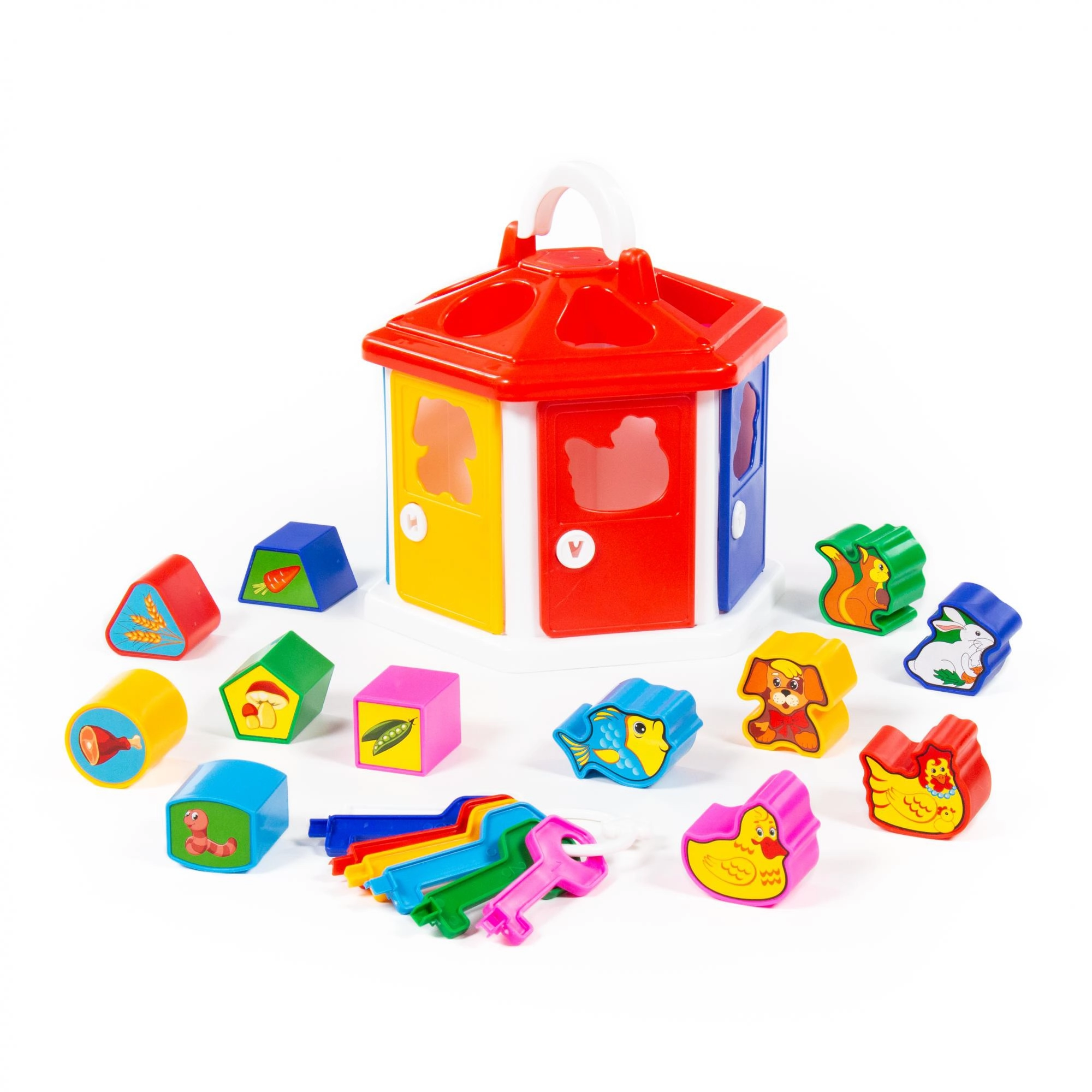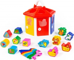 Objevte zábavný svět učení s plastovým domečkem, do kterého děti vkládají 12 tvarovaných dílků se zvířátky. Hračka podporuje jemnou motoriku, koordinaci oko–ruka i rozlišování tvarů a barev. Otevíratelná dvířka s klíčky přinášejí další prvek hry a trénují trpělivost i logické myšlení.