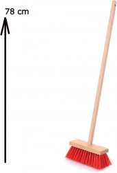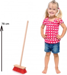 Tato kvalitně zpracovaná dětská metla s přírodní dřevěnou rukojetí a hustými červenými plastovými štětinami je perfektní pro hraní na domácí práce i lehké zametání uvnitř i venku. Hladce broušené dřevo zajišťuje pohodlný a bezpečný úchop, zatímco vyvážené provedení usnadňuje manipulaci i menším dětem.