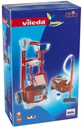 Zábavný a realistický set pro malé pomocníky v domácnosti: dětský úklidový vozík s vysavačem na licenci VILEDA JUNIOR od KLEIN. Obsahuje vozík na kolečkách, mop, smeták, lopatku se smetáčkem, kbelík s vytlačovačem a funkční hračkový vysavač s granulátem. Realistické detaily, odolné zpracování a snadné ovládání podporují kreativní hru a nápodobu dospělých.