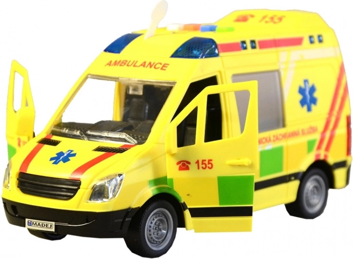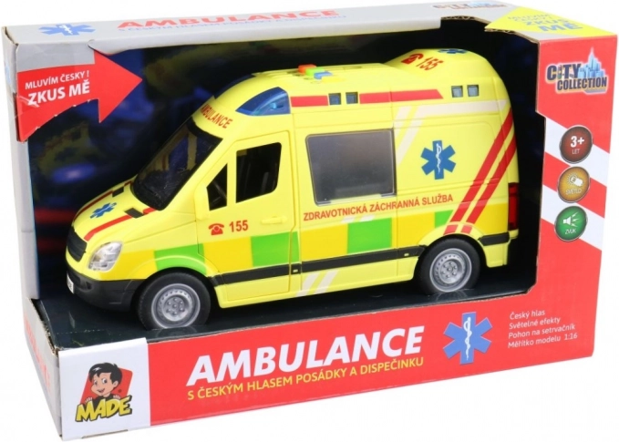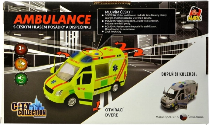 Tato detailně zpracovaná ambulance v reálném českém zbarvení potěší všechny malé záchranáře. Díky setrvačníku snadno jezdí, svítí modrými výstražnými světly a přehrává autentické české hlasy posádky i dispečinku, které dodají hře na opravdovosti.