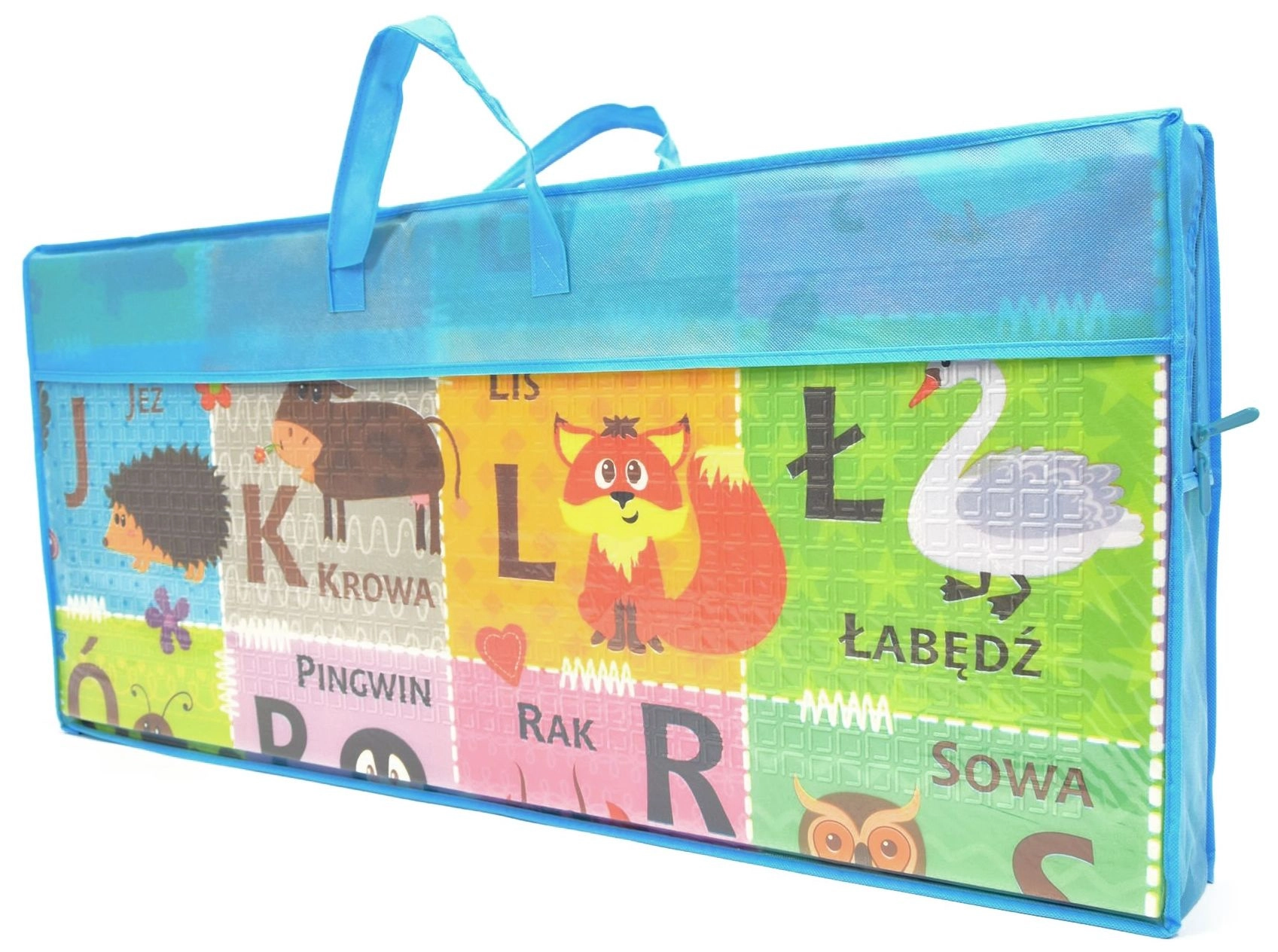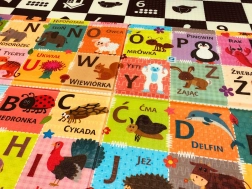 - Oboustranný design: kontrastní čísla a symboly + barevná abeceda se zvířátky