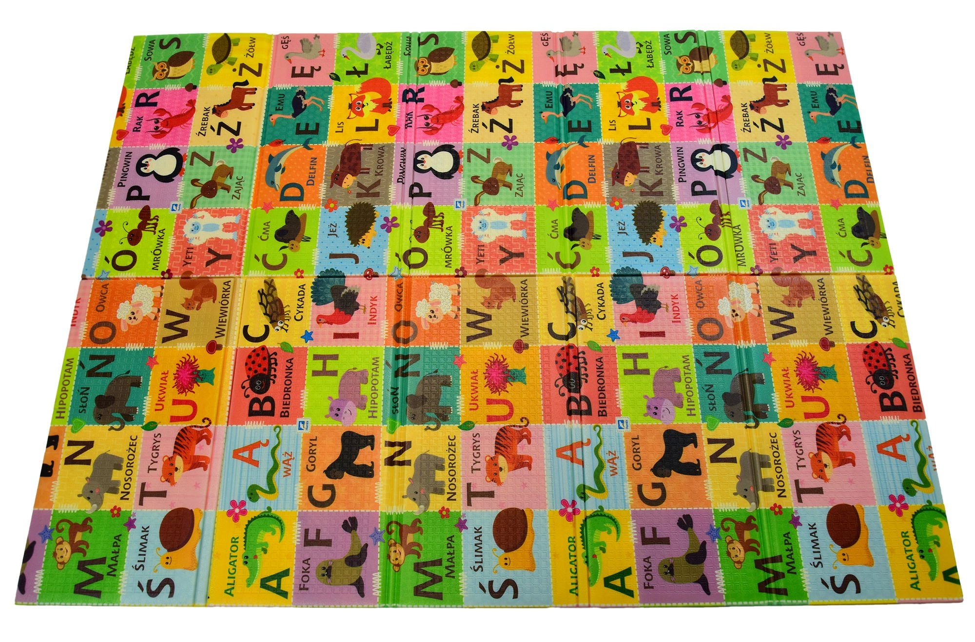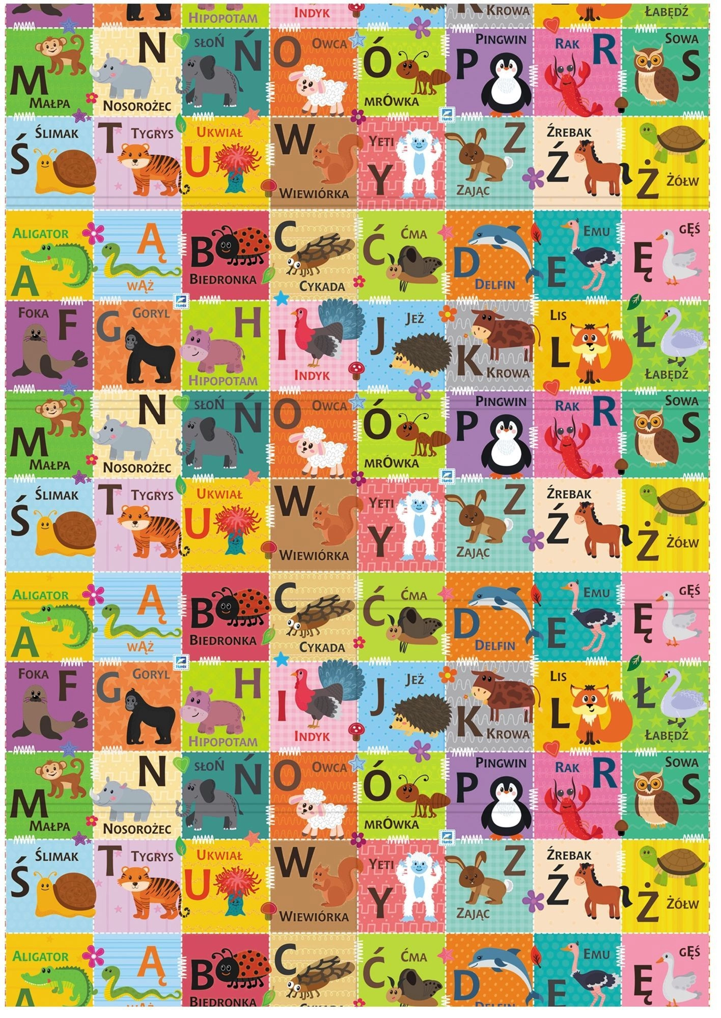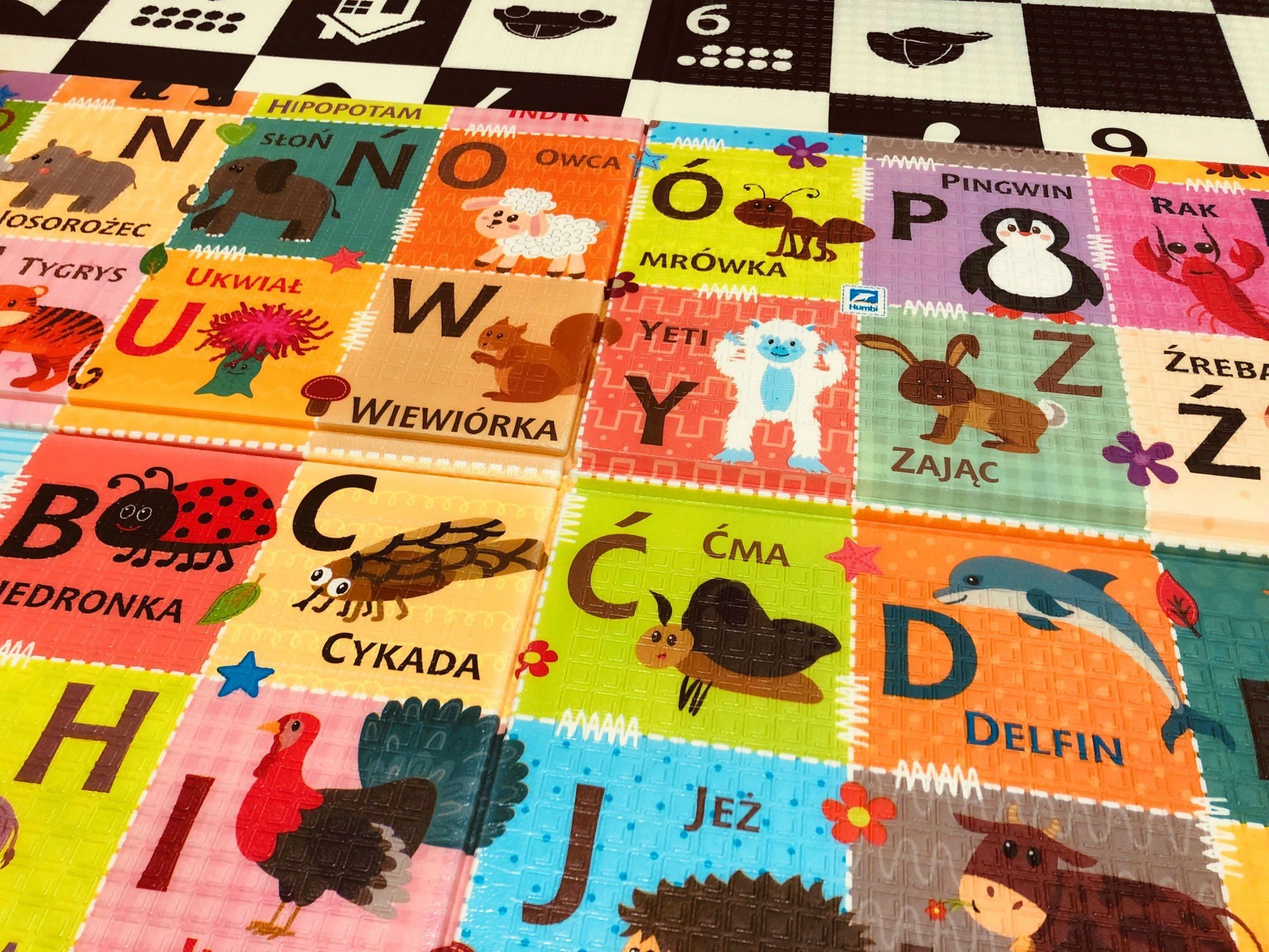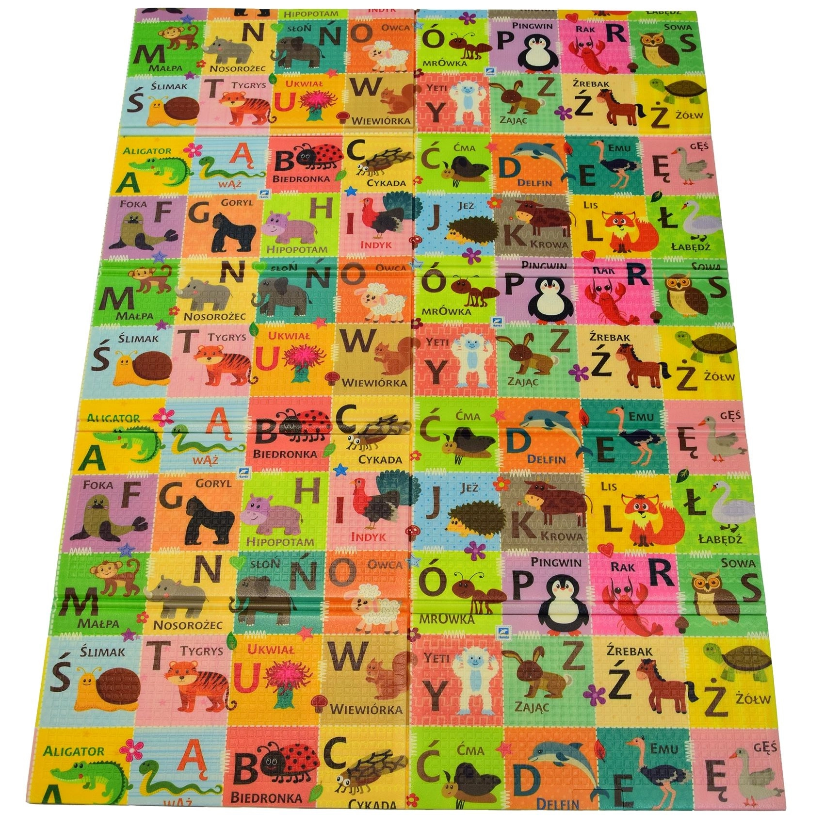 Objevte praktickou a bezpečnou podložku pro děti od narození: oboustranná pěnová podložka HUMBI s rozměry 197 × 177 × 1 cm kombinuje polský/obrazový alfabet, čísla s tečkami a kontrastní motivy pro rozvoj zraku i učení. Je měkká, voděodolná, bez zápachu, z materiálu XPE, který tlumí nárazy a izoluje chlad podlahy. Snadno se skládá, čistí a je ideální pro hraní, lezení i první krůčky.
