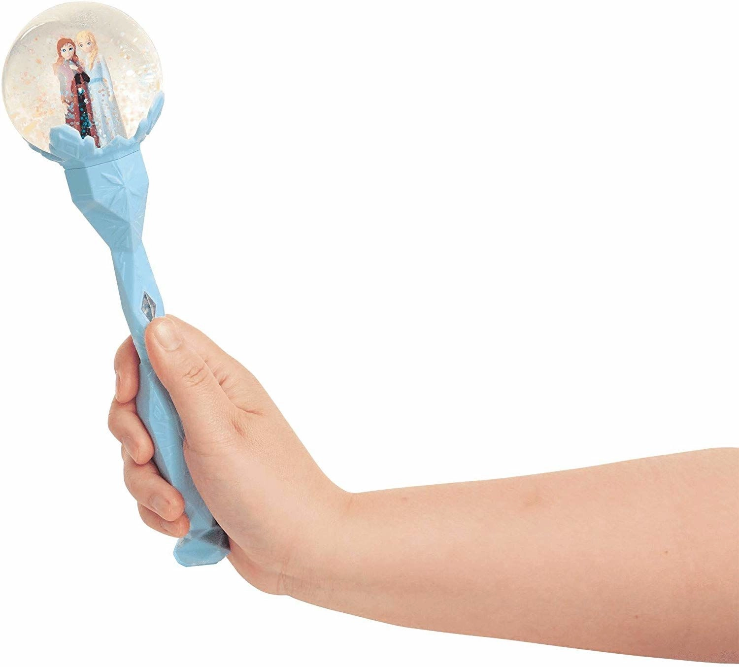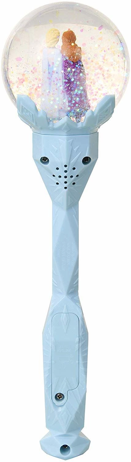 Tato hudební hůlka v jemném odstínu modré kombinuje kouzelnou sněžnou atmosféru s oblíbenou melodií z filmu. V průhledné sněžné kouli se vznáší Anna a Elsa v třpytivém glitteru ve vodě, který se nádherně leskne při každém pohybu.