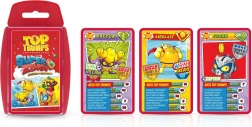 Oblíbená série Top Trumps přináší edici se světem SUPER ZINGS z Kaboom City. Každá karta představuje postavu s pěti číselnými atributy (např. magie, odvaha, moudrost). Vyberte si nejlepší vlastnost, porovnejte s ostatními a získejte jejich karty. Nejvyšší hodnota vyhrává – hrajete, dokud jeden hráč neposbírá celý balíček.