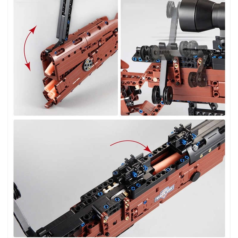 Model je navržen pro chytrou zábavu: některé části jsou pohyblivé, nechybí sklopný bipod pro stabilní prezentaci a mechanismus umožňující vystřelování 5 přiložených projektilů. Stavebnice rozvíjí jemnou motoriku, trpělivost a kreativitu dětí i dospělých.
