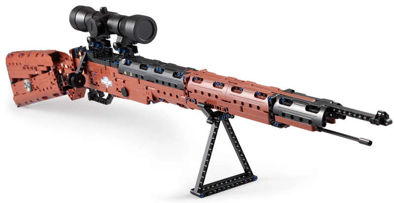 Dlouhá hlaveň, optika, panelové díly a technic spojky vytvářejí věrnou repliku, která vynikne na každé poličce.