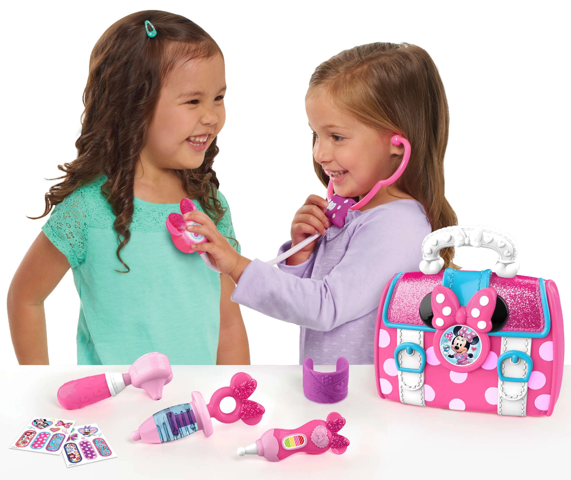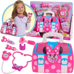 Hrací lékařská sada s motivem MINNIE MOUSE potěší všechny malé doktory. Obsahuje 8 dílů včetně svítícího a zvukového stetoskopu, teploměru a dalších doplňků. Praktická růžová lékařská taška udrží vše pohromadě a podpoří kreativní hru i učení pomoci druhým.