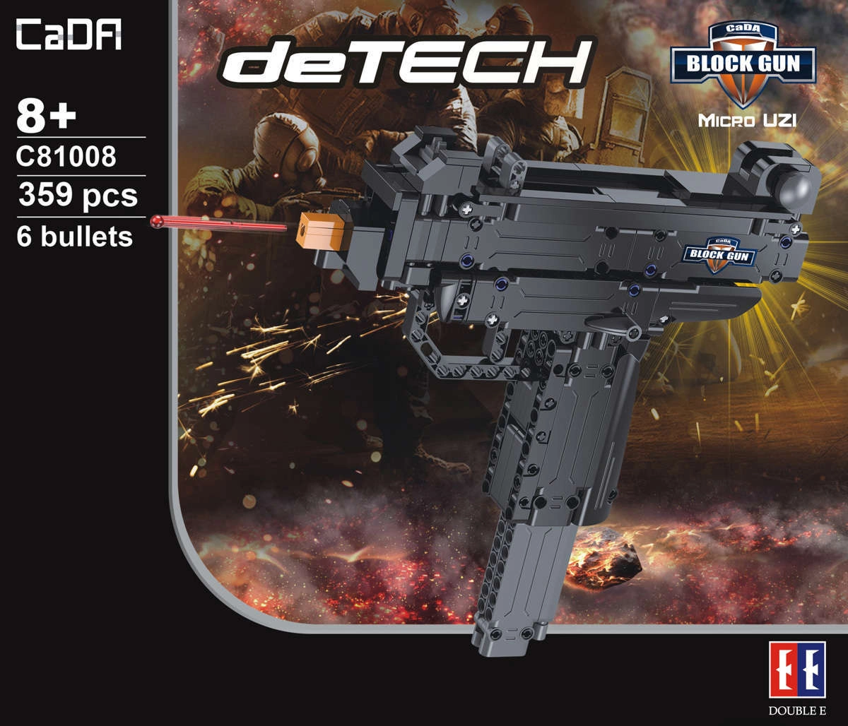 Tato technická stavebnice umožní dětem i dospělým poskládat realisticky vyhlížející model Micro UZI z propojitelných dílků. Díky chytrým konstrukčním prvkům má model pohyblivé části, funkční blokaci a možnost bezpečného vystřelení přiložených měkkých projektilů. Odolné plastové komponenty zajišťují dlouhou životnost a stabilitu modelu.