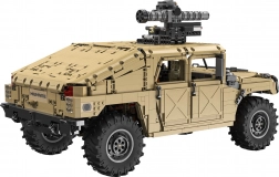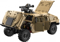 Tento velkoformátový model HUMVEE v měřítku 1:8 potěší náročné stavitele i fanoušky technických stavebnic. Realistické detaily zahrnují mřížku chladiče, motorový prostor, palubní desku, volant, zpětná zrcátka, dvojitá přední sedadla i promyšlený zavazadlový prostor. Ruční ovládací kolečko umožňuje otáčení věže, spuštění granátometu a otáčení kulometu.