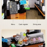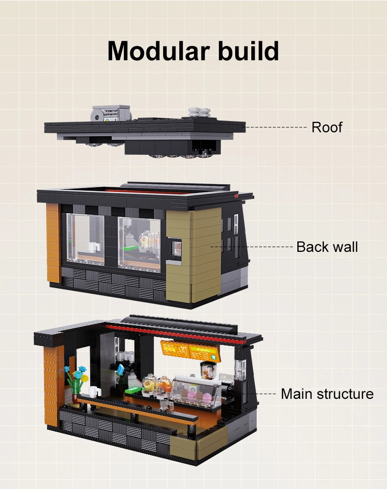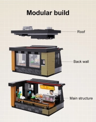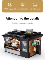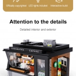 Vytvořte si stylovou výlohu i útulný interiér s kávovarem, vitrínou s dezerty, šálky a dekoracemi. Díky LED pásku na USB získá kavárna večer i přes den jedinečný kavárenský vibe. Modulární konstrukce s odnímatelnou střechou a zadní stěnou usnadňuje hraní i vystavení na poličce.