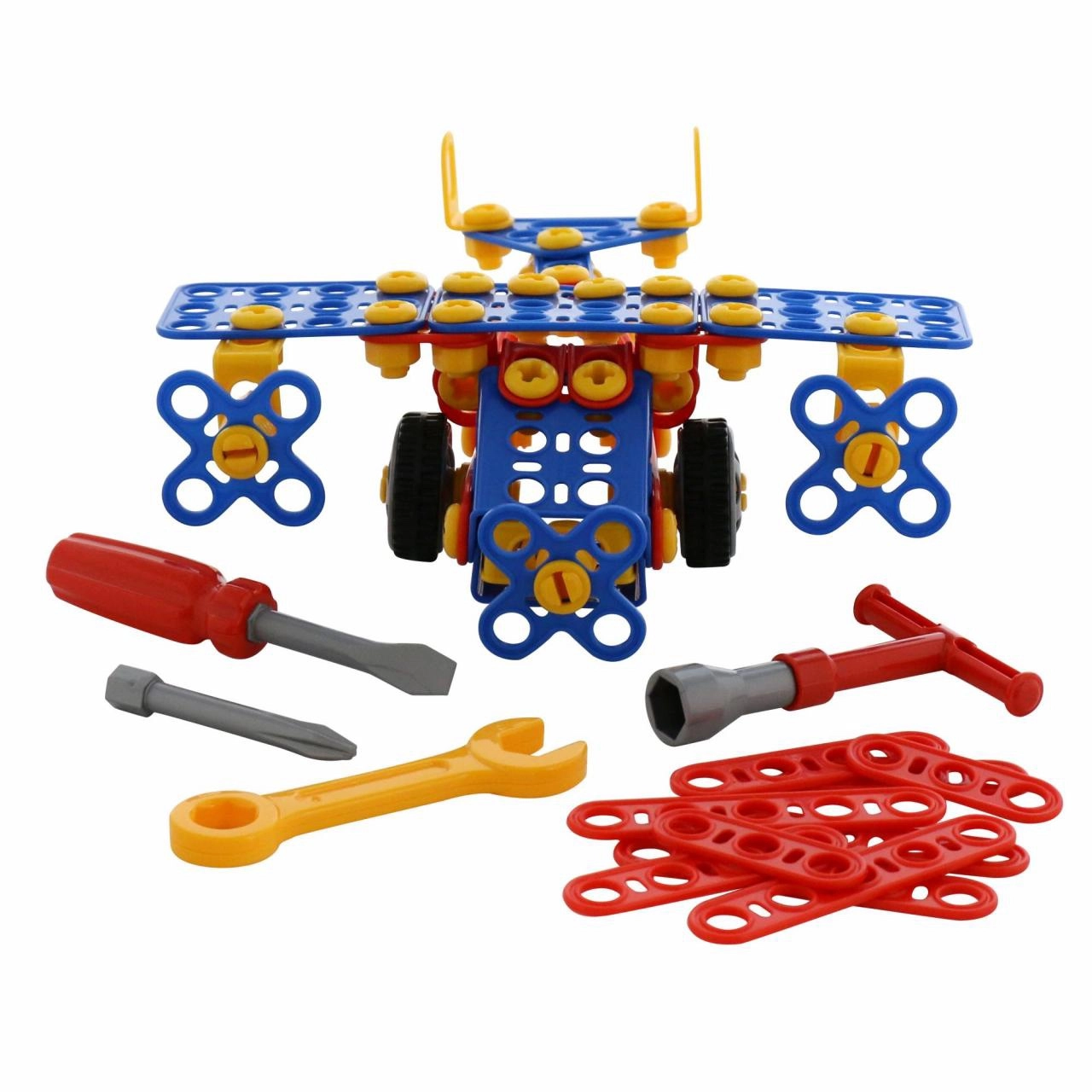 Tato barevná konstrukční stavebnice umožní dětem postavit letadlo i další jednoduché modely z perforovaných dílů, spojovacích prvků a koleček. Součástí jsou i plastové nástroje (šroubovák, klíč), se kterými si děti bezpečně vyzkouší opravdové šroubování.