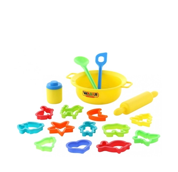 Kompletní sada na pečení 15 ks pro malé i velké pekaře. Obsahuje valček 18 cm, dvě míchačky, misku o průměru 14,5 cm a 11 vykrajovátek. Barevný mix se řídí aktuální skladovou dostupností.