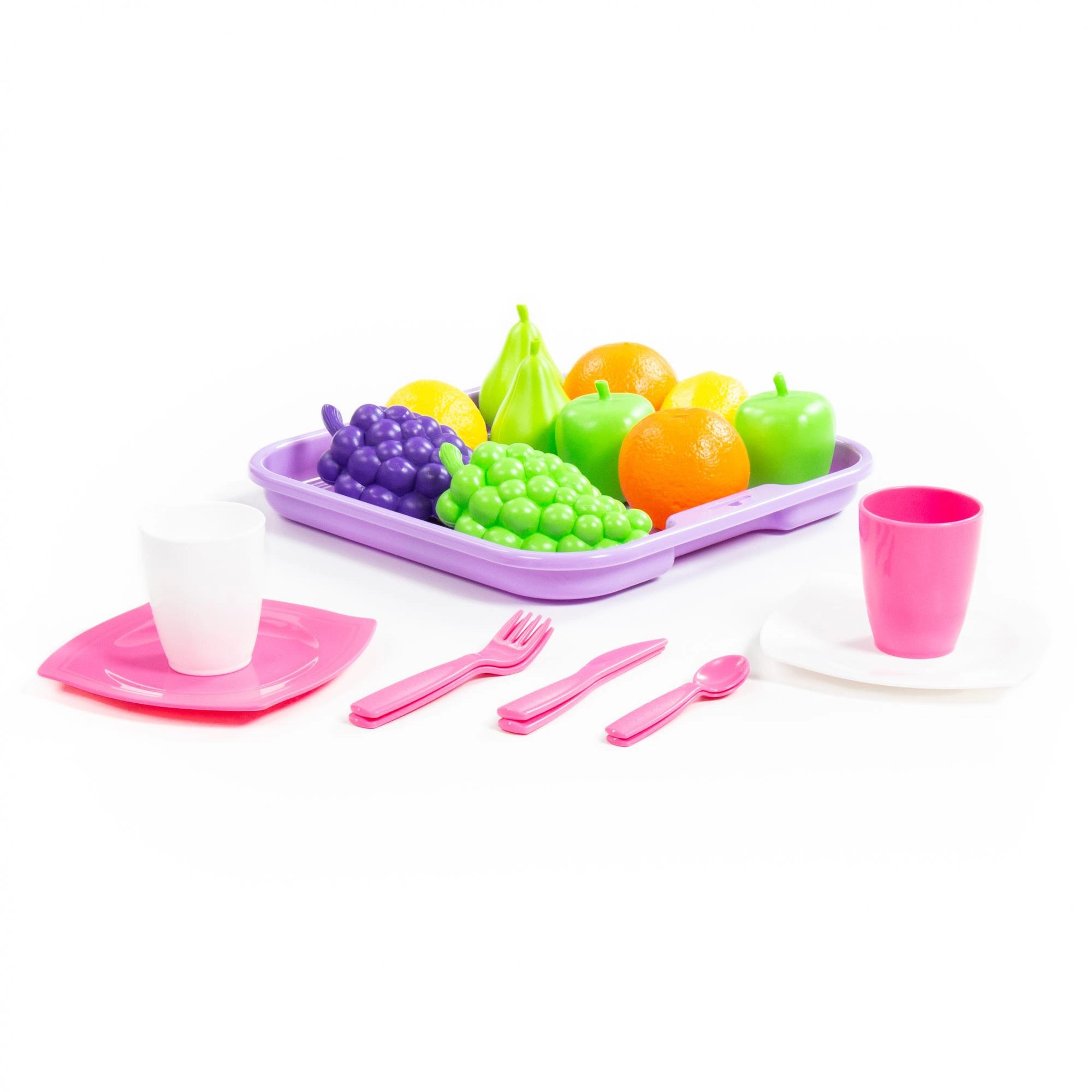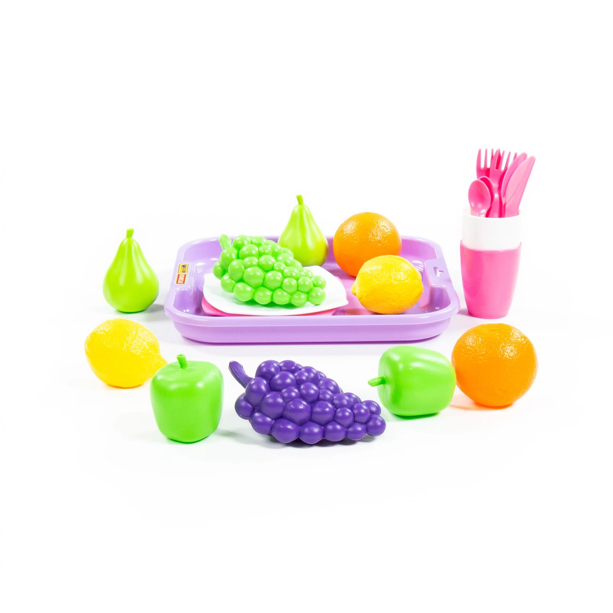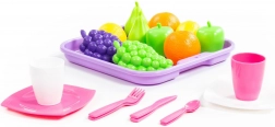 - Obsahuje ovoce (jablko, hrozny, hruška, citron, pomeranč aj.), talířky, pohárky a příbory.