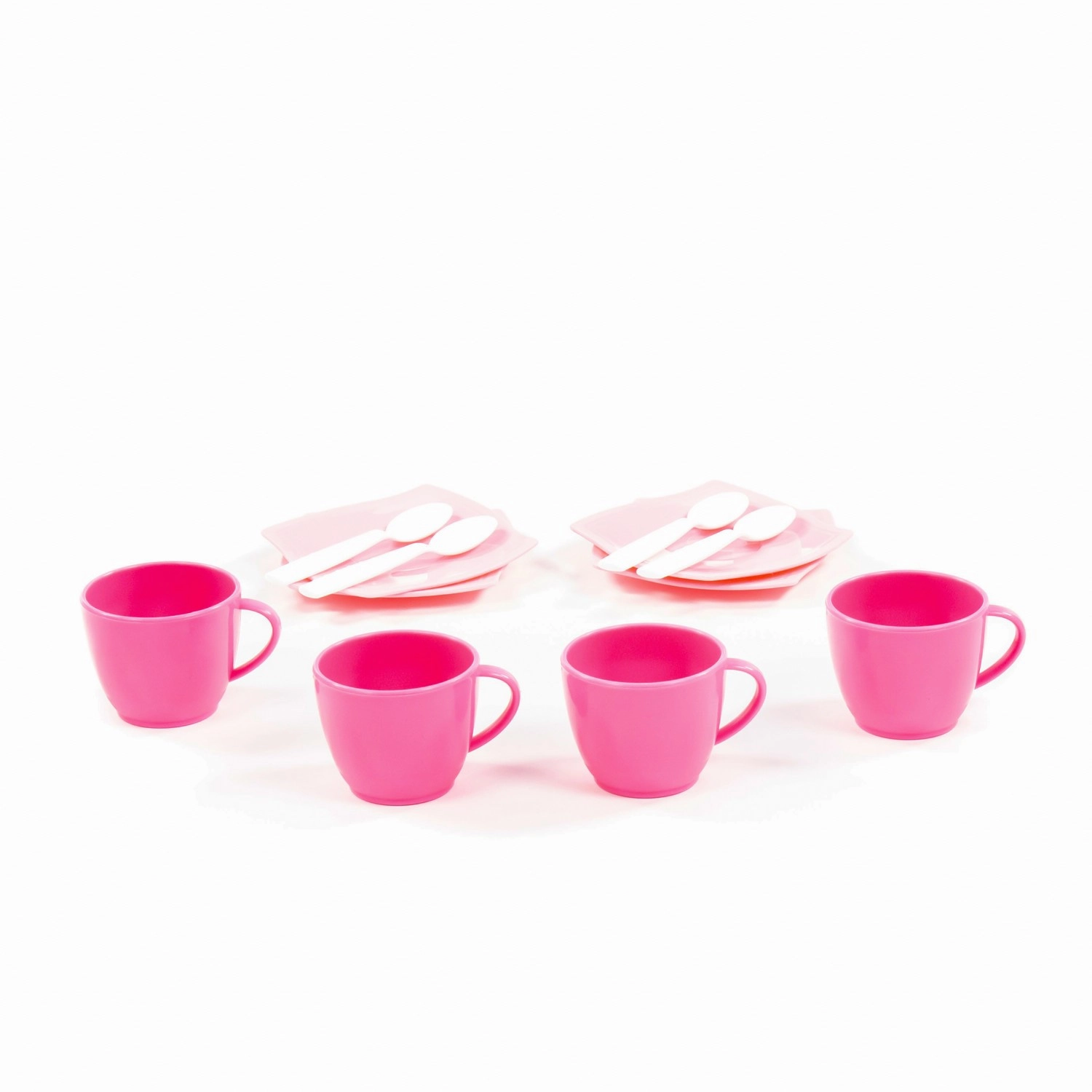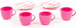 Roztomilá dětská kávová sada Alica pro 4 osoby je ideální pro hraní na čajové a kávové dýchánky. Obsahuje 4 šálky s ouškem, 4 podšálky a 4 lžičky z lehkého plastu – bezpečné, odolné a snadno omyvatelné. Skvělé pro rozvoj jemné motoriky a socializačních dovedností.