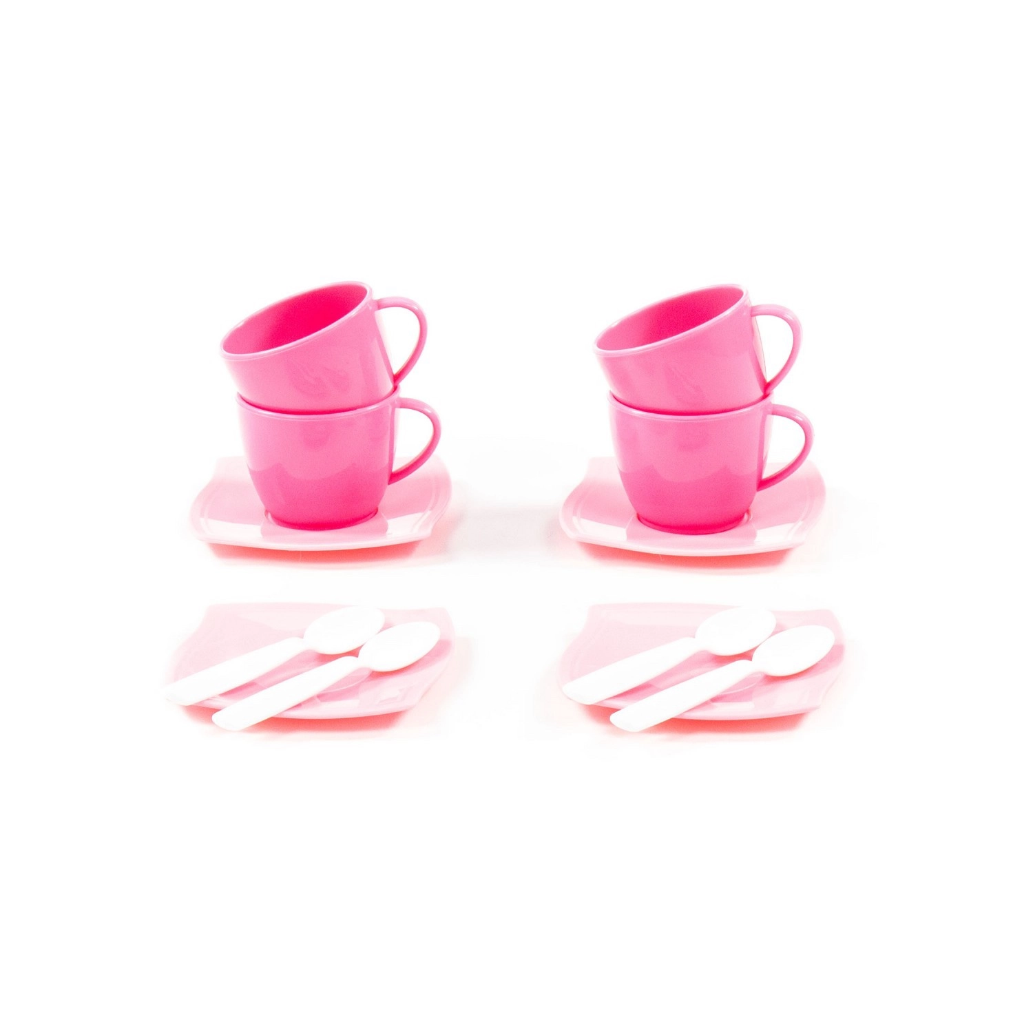 Součástí jsou 4 šálky, 4 podšálky a 4 lžičky – ideální pro dětské čajové a kávové párty.