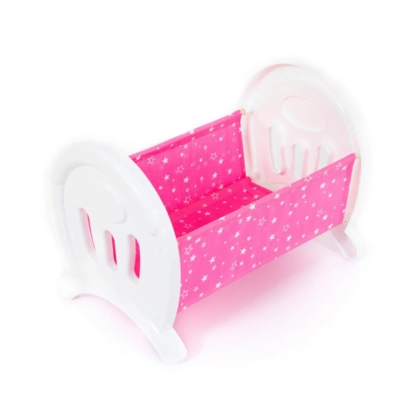Skládací postýlka pro panenky kombinuje pevná plastová čela a měkké textilní lůžko, takže je lehká, ale zároveň stabilní. Děti mohou panenku pohodlně uložit a jemně ji kolébat ke spánku, což rozvíjí fantazii i pečovatelské dovednosti.