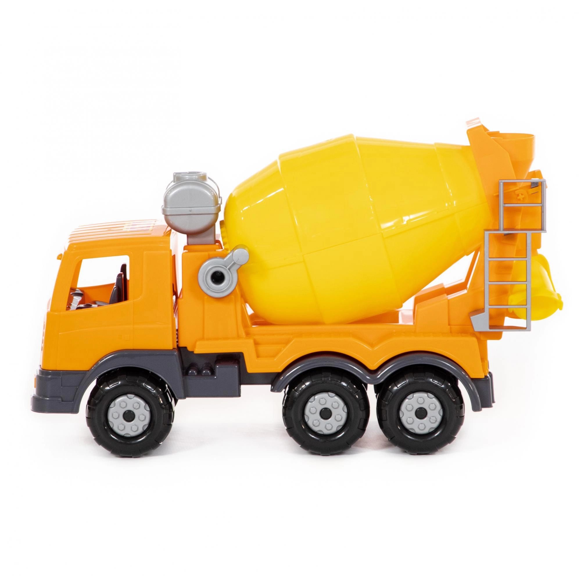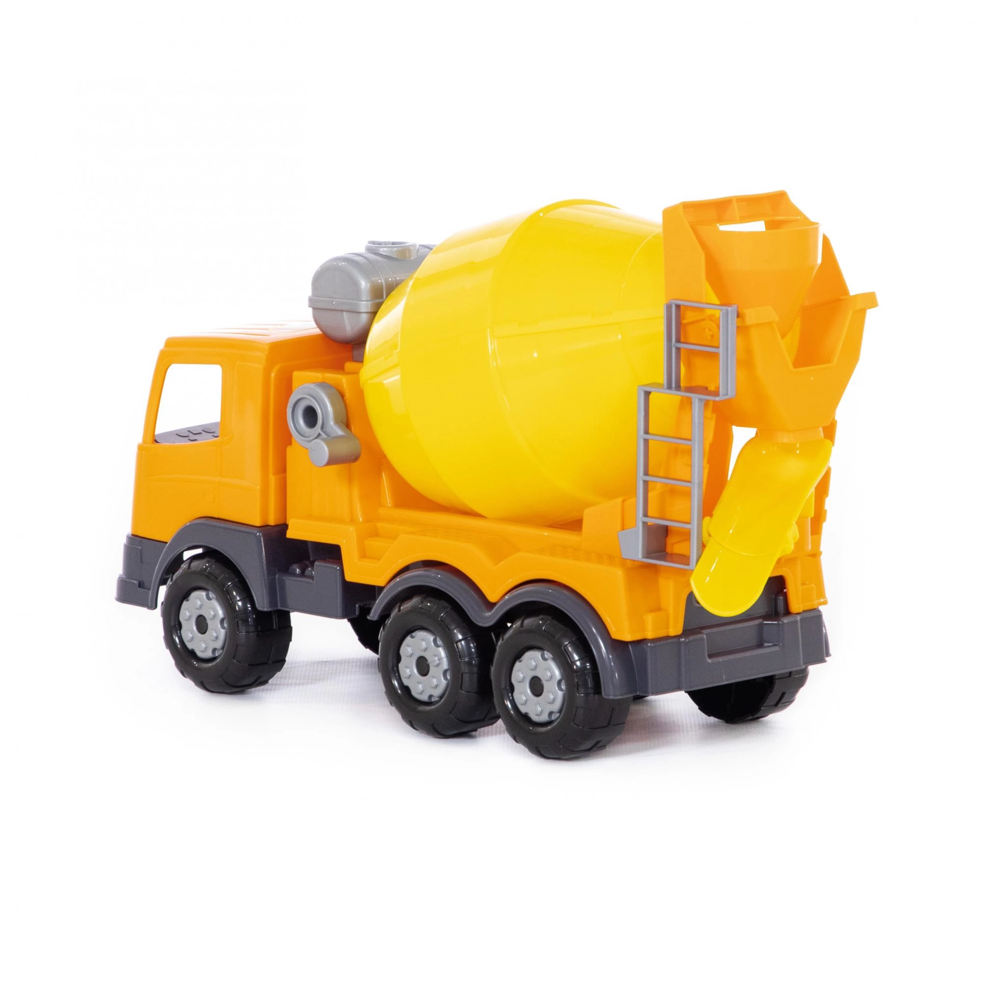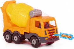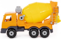 Díky ruční klice mohou děti snadno otáčet bubnem a napodobit skutečné míchání betonu – realistická hra, která rozvíjí motoriku.