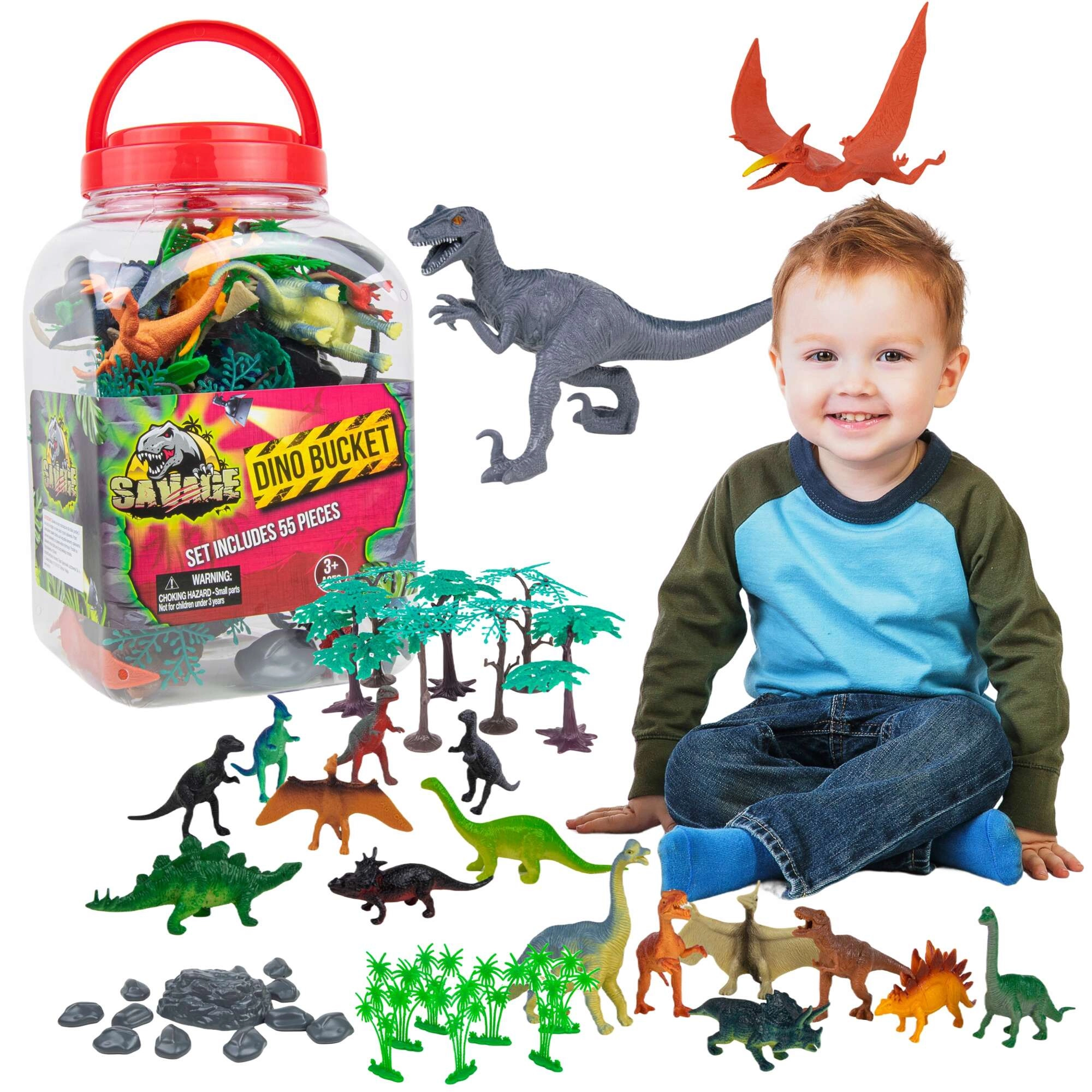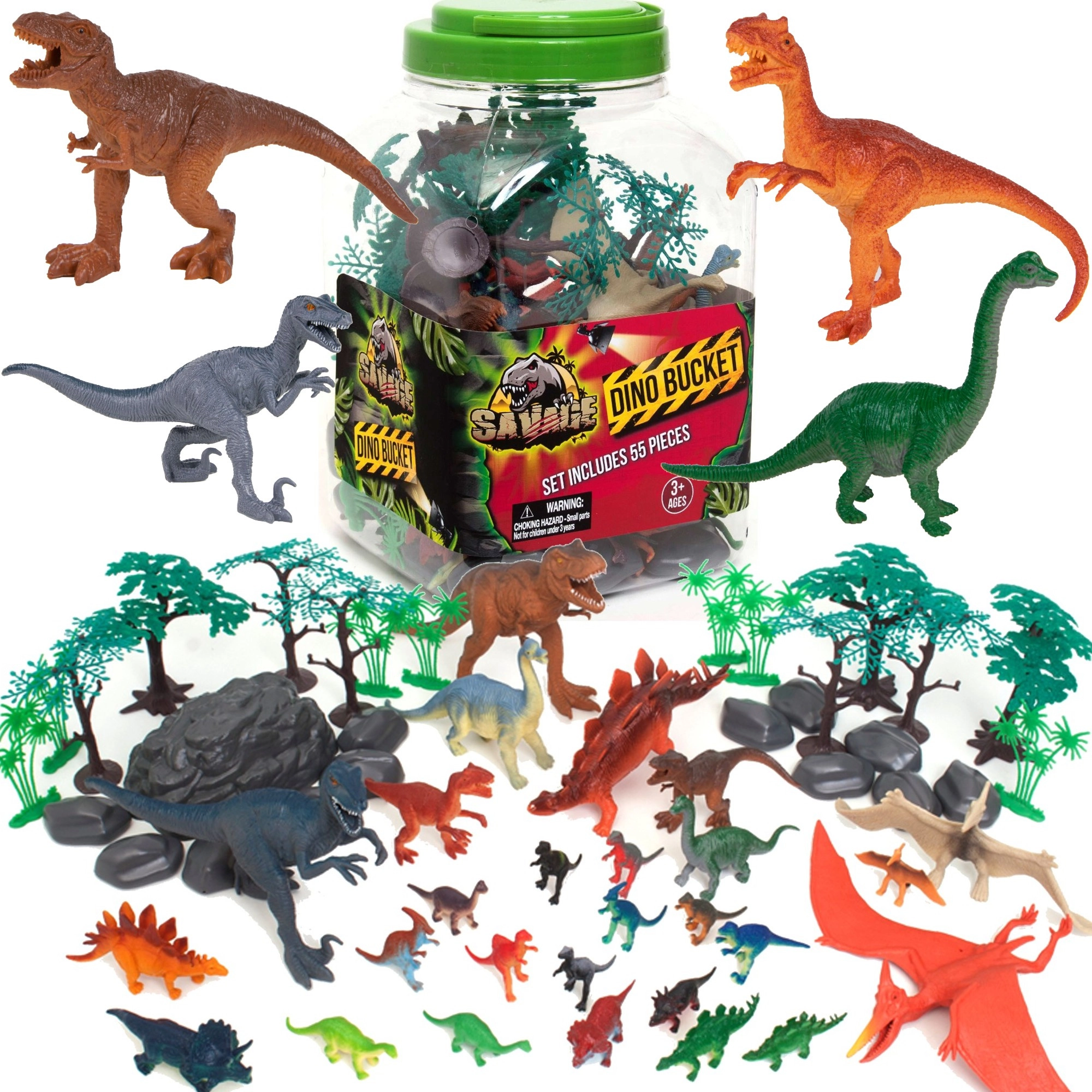 Vše je přehledně uloženo v uzavíratelném kýblu s rukojetí, takže se sada skvěle hodí na doma i na cesty. Ideální jako dárek pro děti od 3 let – zábava na dlouhé hodiny a skvělý základ pro budování vlastního pravěkého světa.