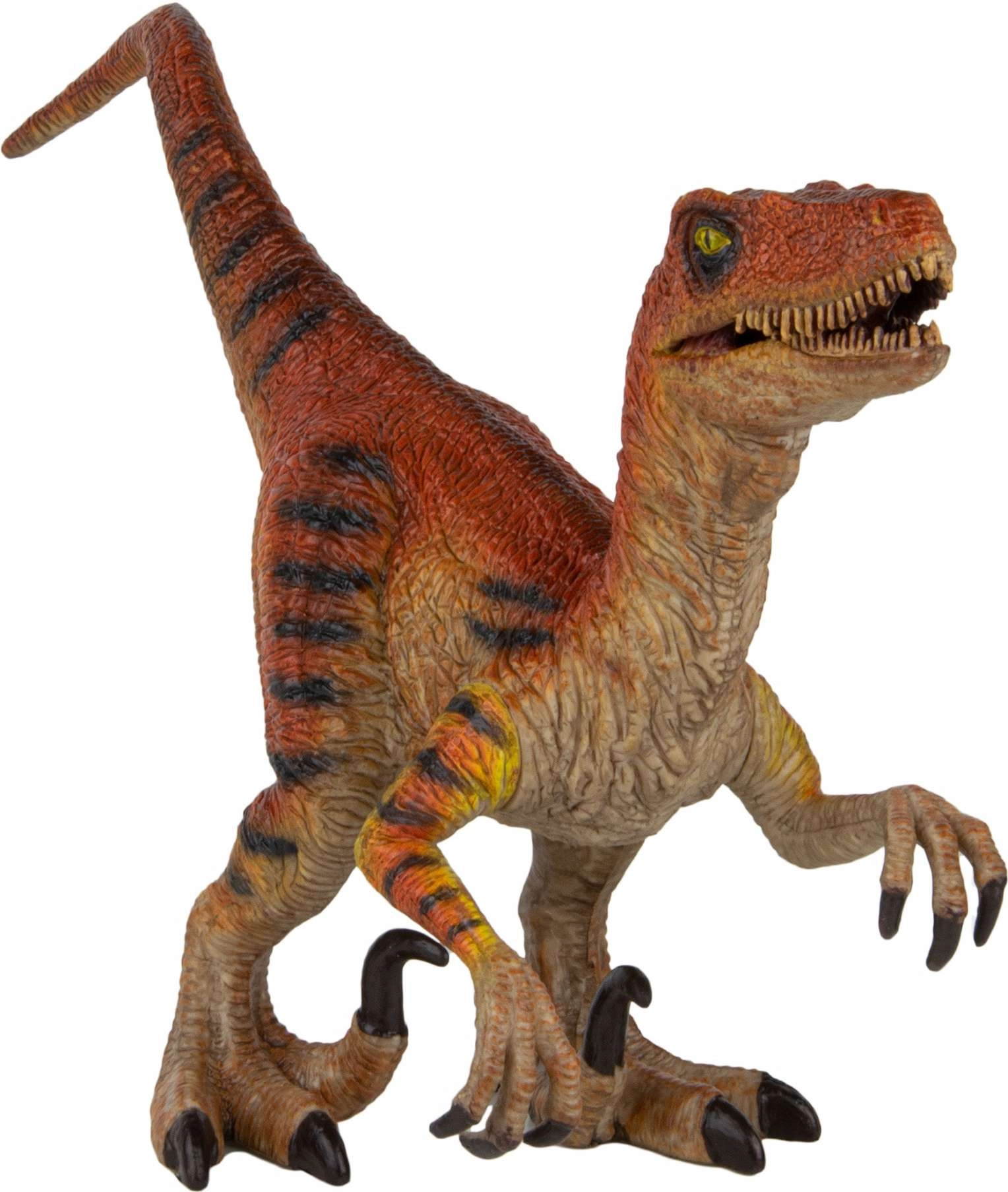 Tato realistická figurka Velociraptora potěší malé i velké fanoušky prehistorie. Precizní povrchová textura, oranžovo‑hnědé zbarvení s černými pruhy a výrazné detaily zubů a drápů působí mimořádně věrohodně. Pohyblivá čelist a přední tlapy přidávají na interaktivitě a rozvíjejí dětskou fantazii.