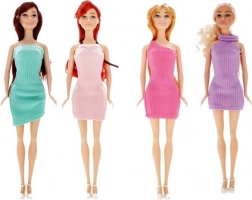 Stylová panenka v elegantních šatech a botách potěší každé dítě. Má gumové a pohyblivé ruce, je dostupná ve 4 různých provedeních a barvách a je ideální pro děti od 3 let. Hračka je vyrobena z plastu, gumy, textilu a umělých štětin a je balena v krabici s okénkem – skvělý dárek pro malé parádnice.