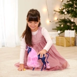 Součástí balení je elegantní zlatý kartáč, díky němuž můžete hřívu snadno rozčesávat a stylovat. Figurka je vyrobena z kvalitních materiálů, má výrazné růžovo‑lila oči a stabilně stojí na rovném povrchu – perfektní pro hraní i vystavení v dětském pokojíčku.