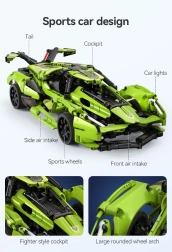 Postavte si vlastní zelené sportovní auto Blade od značky CaDA a ovládejte ho na dálku pomocí RC ovladače 2,4 GHz nebo aplikace Bluetooth. Stavebnice obsahuje 432 dílků, fungující přední a zadní LED světla, gumová kola pro jízdu po různých površích a dosah ovládání přes 25 metrů. Maximální rychlost až 5,5 km/h a elegantní balení dělají z této sady skvělý dárek pro malé i velké konstruktéry.