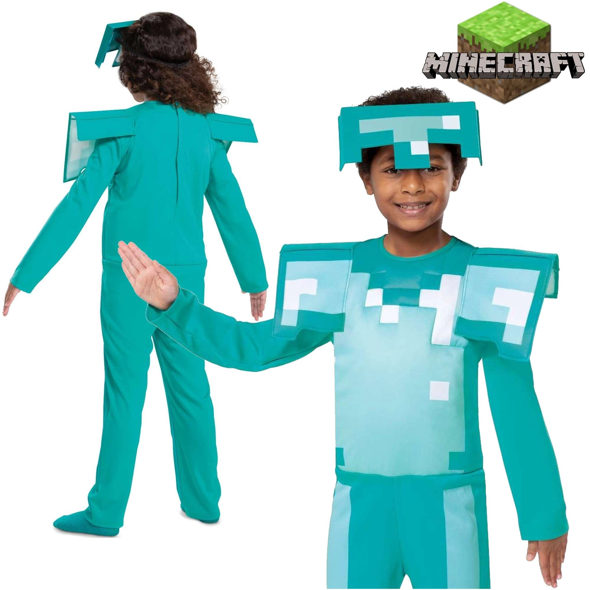 Proměňte malého hráče ve hrdinu z oblíbené hry MINECRAFT. Kostým diamantové zbroje zaujme autentickým pixelovým vzhledem, lehkou helmou a vyztuženými prvky, které dodají brnění opravdový „game“ efekt. Díky pohodlnému střihu a měkkým výztuhám se skvěle nosí i při delším dovádění.