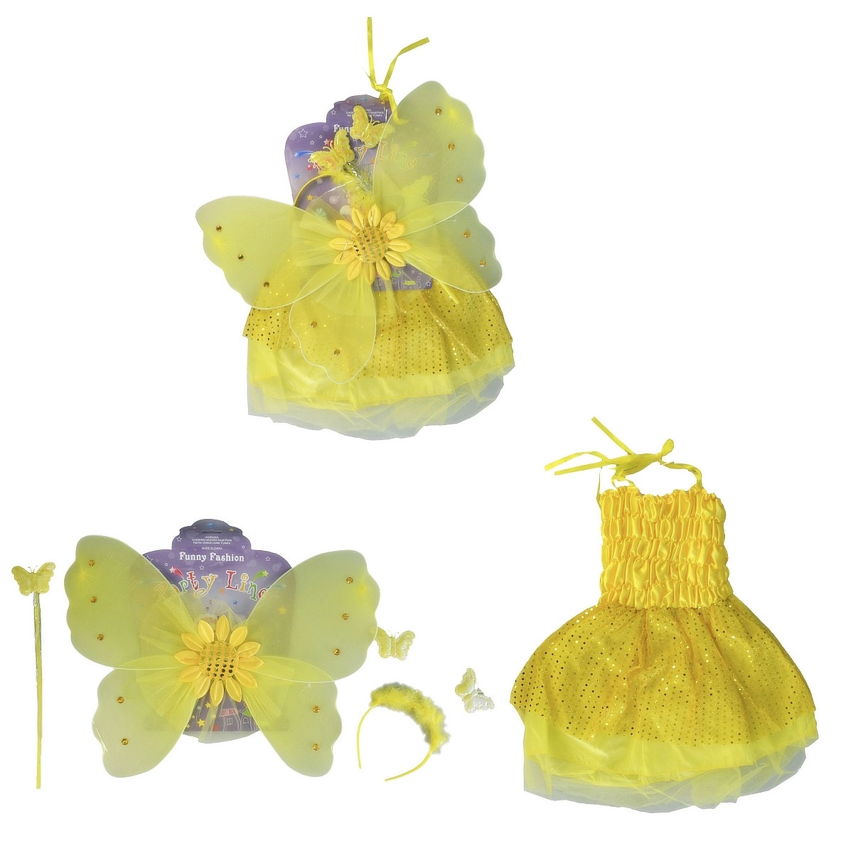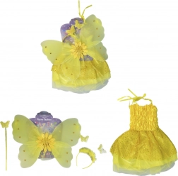 Proměňte své dítě v veselou slunečnici! Tento žlutý kostým je navržen tak, aby byl pohodlný, výrazný a hravý. Sada obsahuje šaty s jemnými křídly, ladící čelenku a kouzelnou paličku – perfektní kombinaci pro karnevaly, školní představení nebo domácí hraní.