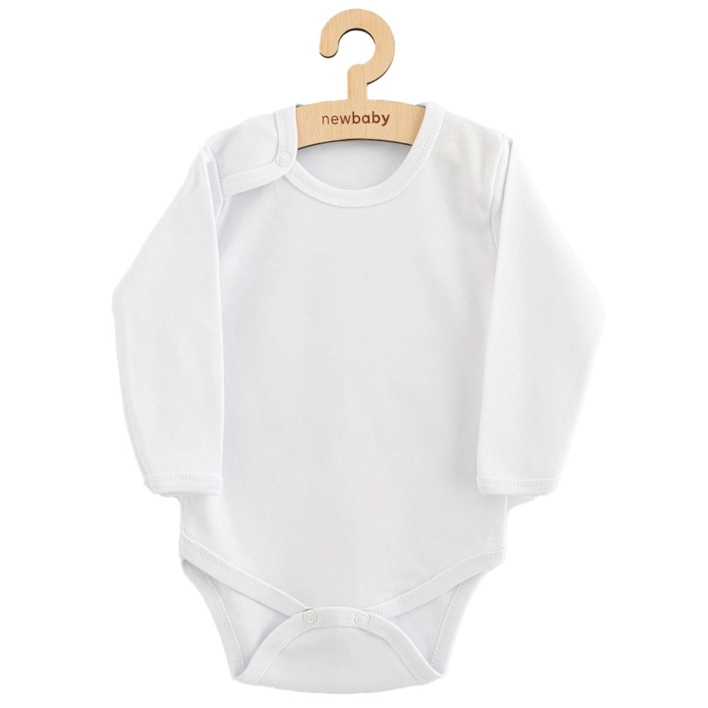 Pohodlné kojenecké body s dlouhým rukávem od značky New Baby v bílé barvě. Nabízí měkoučký 100% bavlněný materiál, praktické zapínání na cvočky na ramínku a mezi nožičkami a snadné přebalování i oblékání po celý den.