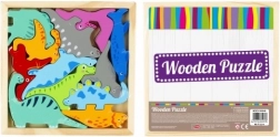 Barevná skládanka s motivem dinosaurů rozvíjí kreativitu, jemnou motoriku a koncentraci dětí. Edukační puzzle jsou skvělou volbou pro zábavné učení a trénink přiřazování tvarů.