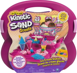Voňavý Kinetic Sand napodobuje pocit mokrého písku, ale ruce zůstávají zcela suché. Díky jedinečným kinetickým vlastnostem se zrníčka spojují, písek drží tvar a nerozsypává se. Děti mohou tvarovat písmenka, stavby i „zmrzlinové“ dobroty – fantazii se meze nekladou.