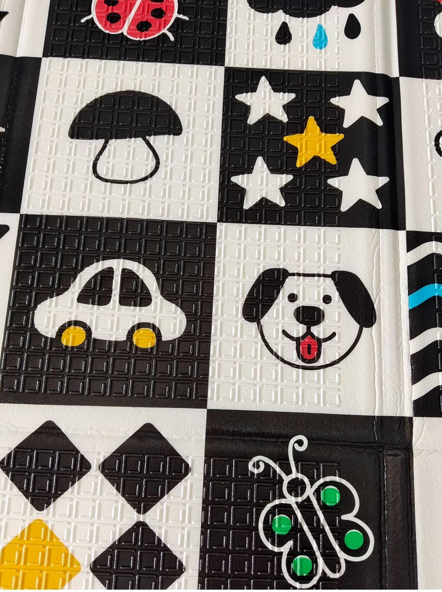 Materiál XPE je bez zápachu, voděodolný a snadno omyvatelný – nečistoty stačí setřít vlhkým hadříkem. Podložka je skládací, lehká a úsporná na prostor, takže ji snadno přenesete i uložíte. Díky protiskluzové textuře zajišťuje stabilitu při hrách i rodičovském cvičení.