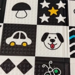 - Oboustranné: barevná abeceda (DE) / černo-bílé kontrastní motivy