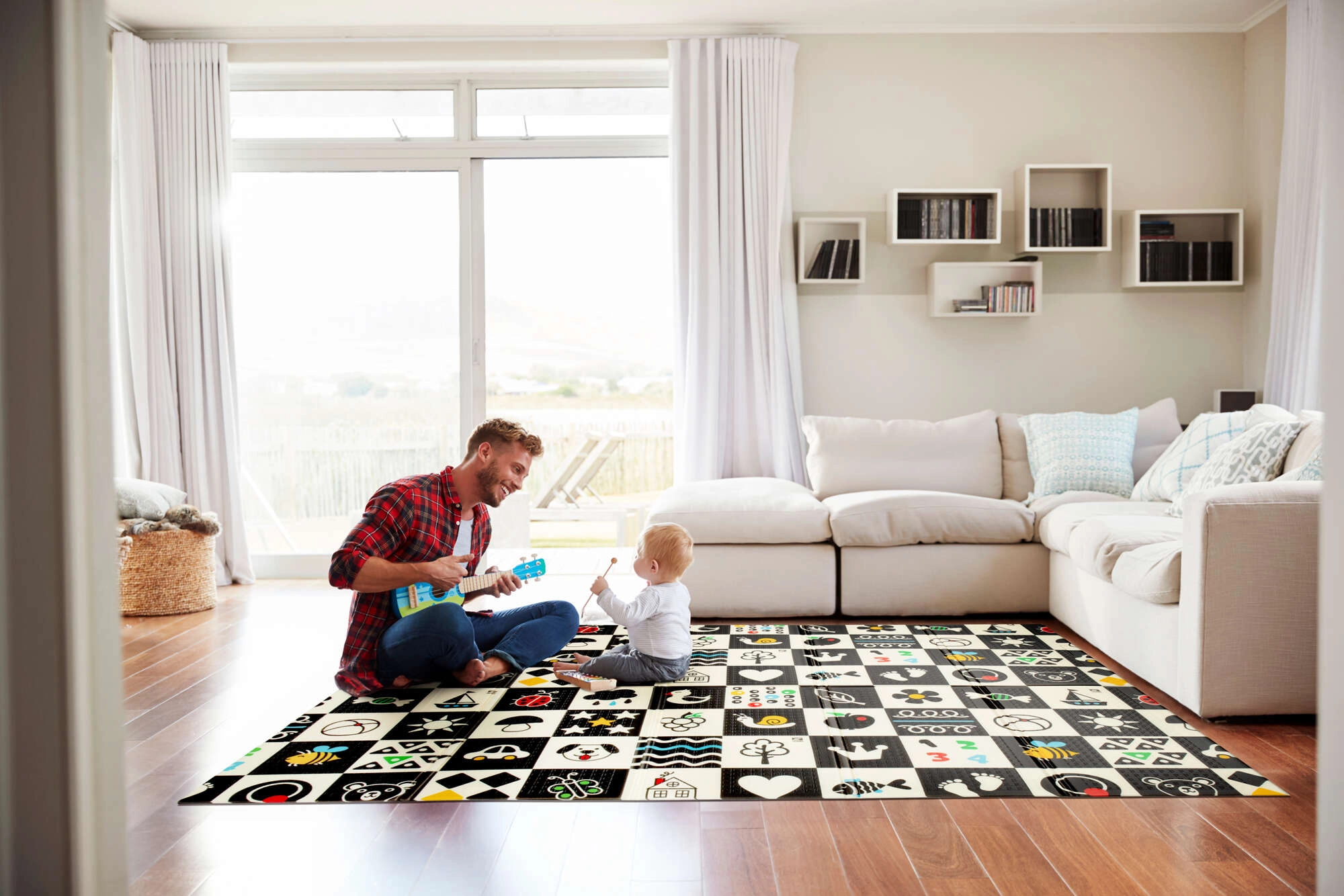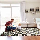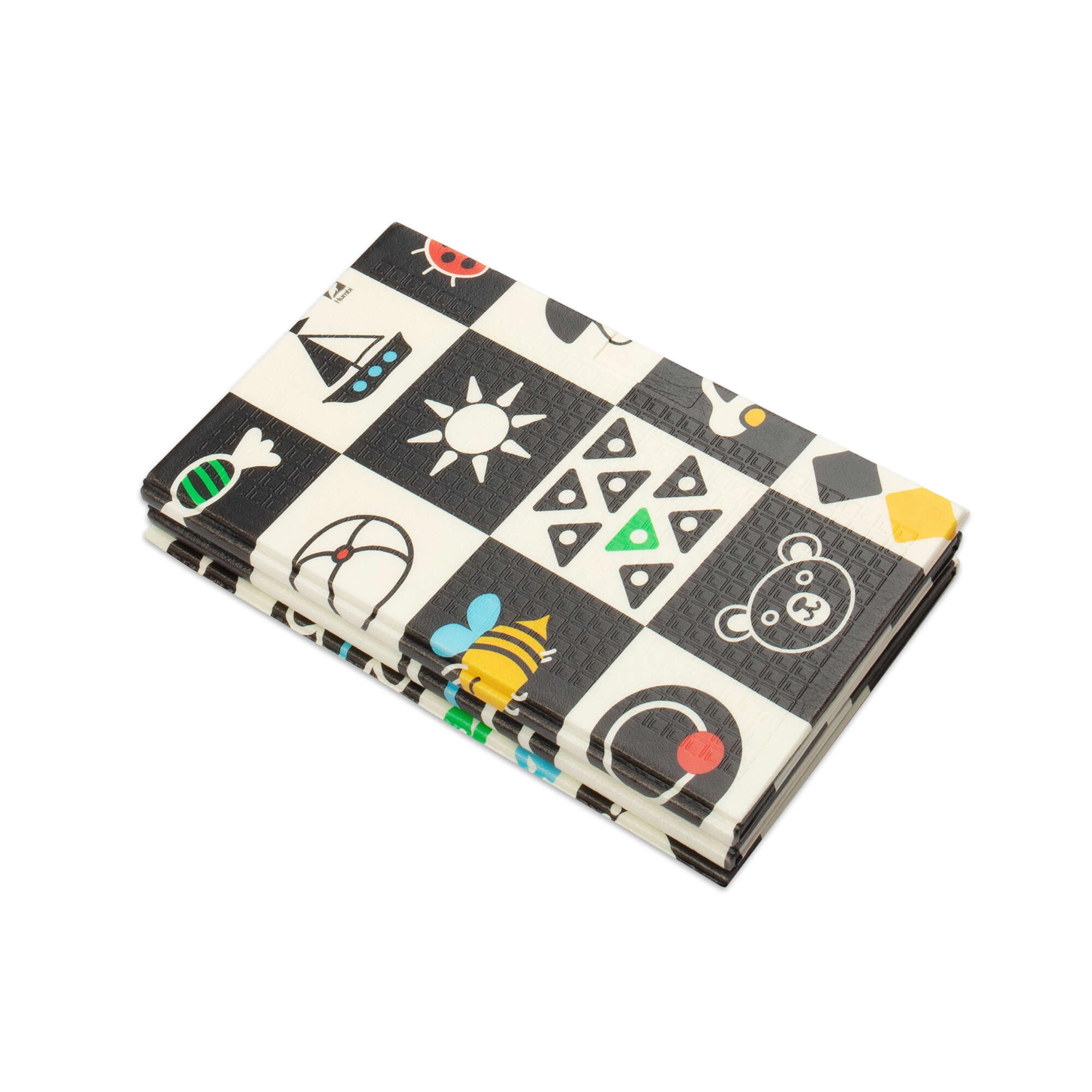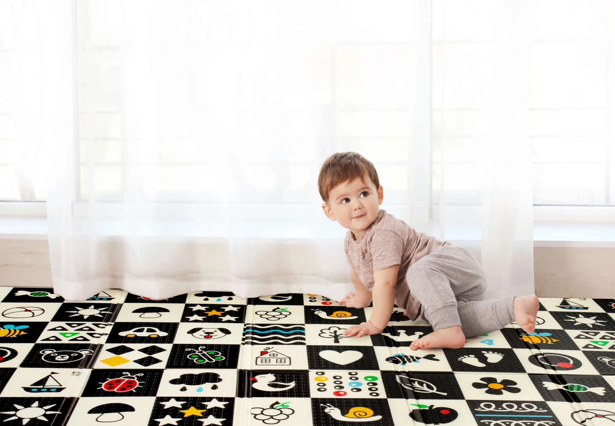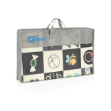 Velká, měkká a skládací podložka z prémiové pěny XPE zajistí miminku bezpečné a pohodlné místo na hraní, pasení koníčků i první krůčky. Je oboustranná s edukativní grafikou (abeceda a kontrastní ikonky), voděodolná, snadno se čistí a díky přiložené transportní tašce ji vezmete do obýváku, dětského pokoje i na zahradu.
