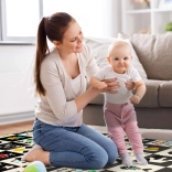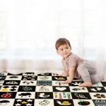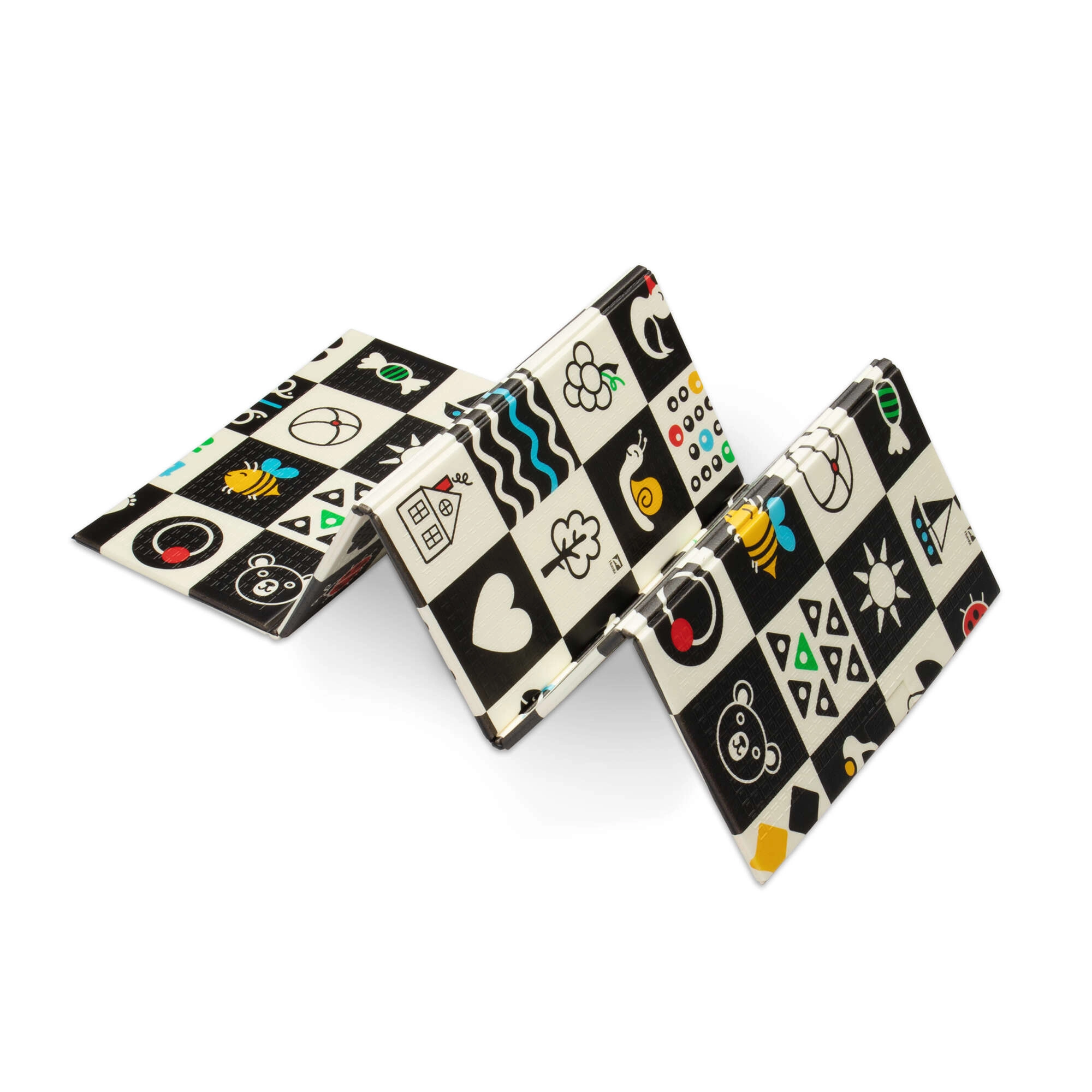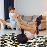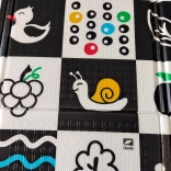 Jedna strana s kontrastními ikonami pro stimulaci zraku miminek, druhá s barevnými motivy pro učení a objevování. Stačí otočit podle nálady.