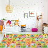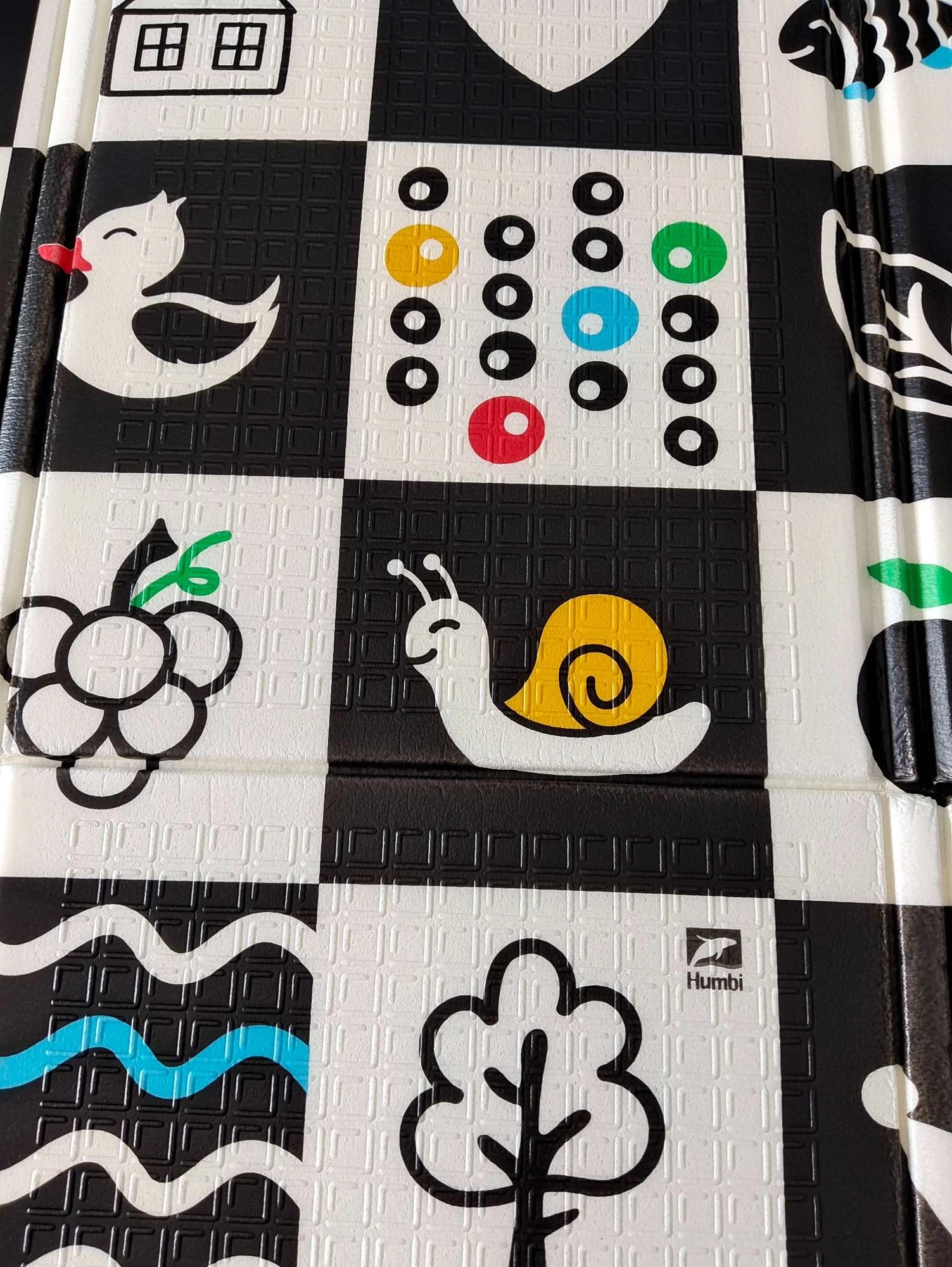 Podložka HUMBI z bezzápachové pěny XPE nabízí skvělou tlumicí ochranu a izolaci od chladu. Je příjemně měkká, ale odolná, a díky protiskluzovému povrchu je ideální pro bezpečné učení plazení a chůze. Oboustranný potisk kombinuje kontrastní motivy pro vizuální stimulaci a hravou abecedu pro první poznávání.