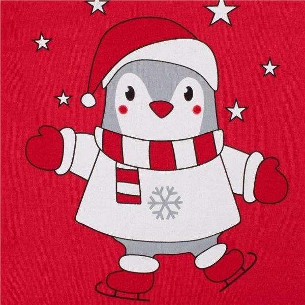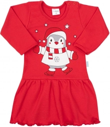 Praktické zapínání na cvoček na ramínku usnadňuje oblékání, zatímco pružná čelenka ladí se šatičkami a krásně doplní outfit. Roztomilý zimní motiv tučňáka a výrazná červená barva dodají oblečení hravý vzhled.