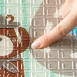 - Antiskluzová textura s jemným reliéfem pro jistější lezení a chůzi, podpora sensorického rozvoje.