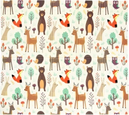 - Lesní zvířátka / barevné uličky (tyrkysové pozadí)