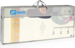 Podložka HUMBI je vyrobena z prémiové, bez zápachu, netoxické pěny XPE, která skvěle tlumí nárazy, izoluje od chladu a díky protiskluzové struktuře podporuje bezpečné učení lezení a chůze. Oboustranný potisk nabízí milé zvířecí motivy s výškovou měrkou a druhou stranu s barevnými uličkami a vozidly pro rozvoj fantazie.