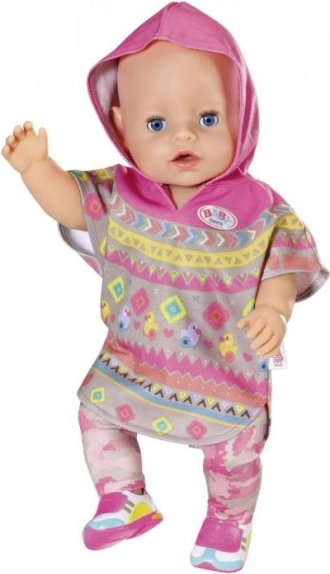 Stylový set oblečků pro panenky BABY born ve velikosti 43 cm přináší do hry více fantazie i roztomilého stylu. Obsahuje měkké pončo s kapucí, trendové kalhoty a sladěné botičky. Ideální pro děti od 3 let, které milují převlékání a péči o své panenky. Kvalitní zpracování zajistí snadné oblékání a dokonale padnoucí střih.