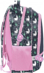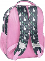 Stylový školní batoh od značky Paso v šedo‑růžové barevné kombinaci s roztomilou lamou a měkkým „chlupatým“ detailem. Je lehký, má ergonomické, nastavitelné popruhy, jednu velkou komoru, menší komoru, přední kapsičku a boční síťované kapsy. Odolný vůči promoknutí, s reflexními prvky a zpevněným dnem pro každodenní pohodlné nošení.