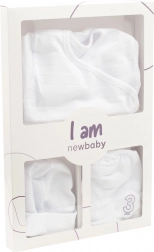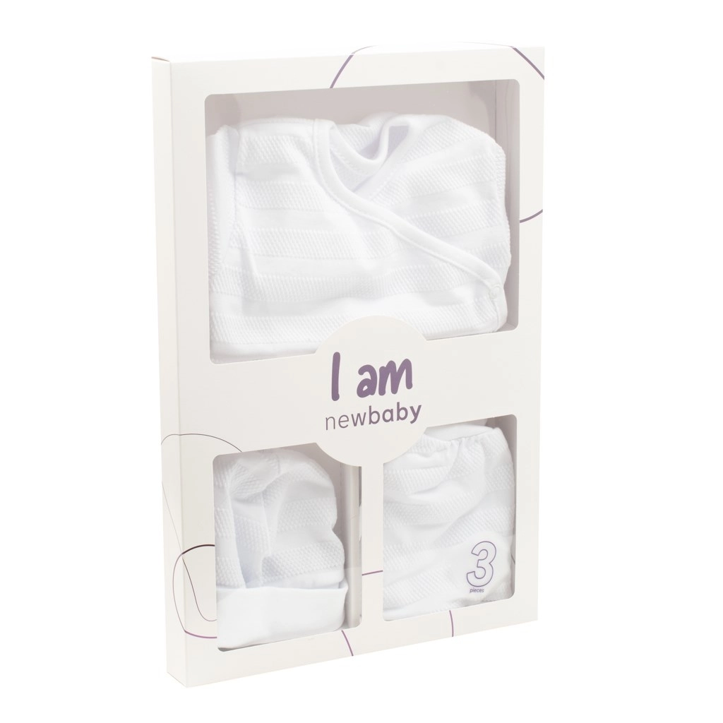 Tato novorozenecká souprava NEW BABY I AM je navržena s ohledem na citlivou pokožku miminek. Jemná a prodyšná bavlna poskytuje celodenní pohodlí, zatímco praktické detaily usnadní každodenní přebalování a oblékání. Neutrální bílá barva a čistý design se hodí pro holčičky i chlapečky.