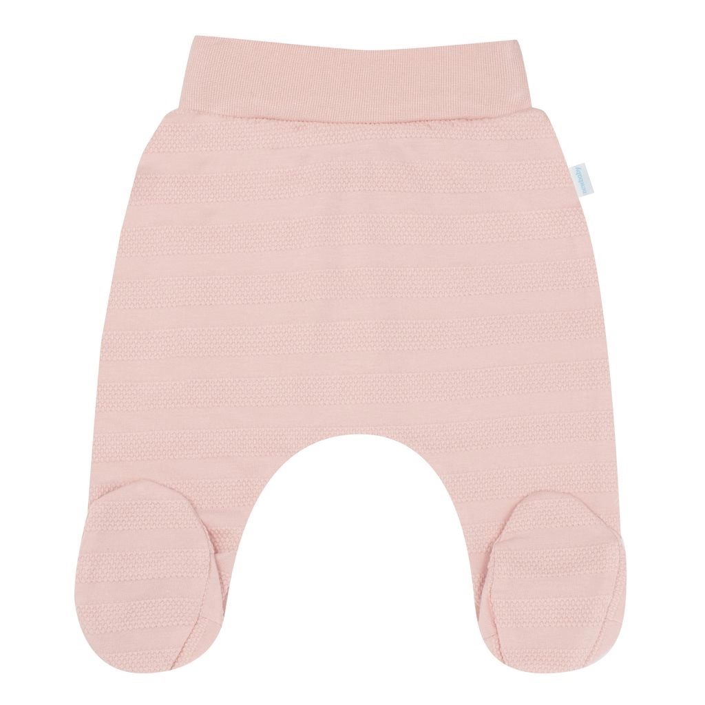 Širší pružný pas netlačí na bříško a integrované nožičky udržují miminko v teple a pohodlí.