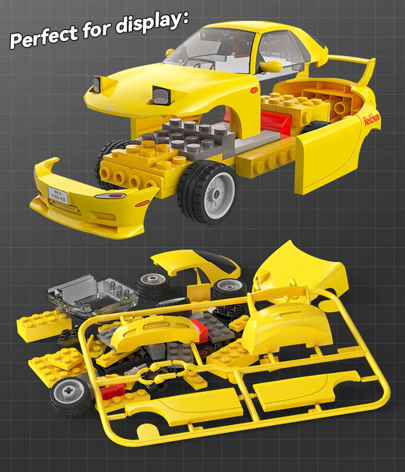 Užijte si stavění legendárního vozu ze série Initial D – model MAZDA RX-7 FD3S v elegantní žluté barvě. Díky 66 dílkům je model ideální pro méně zkušené stavitele i děti od 8 let. Nechybí gumová kola pro snadný pohyb po různých površích a propracované detaily, které potěší fanoušky kultovní série i sběratele.